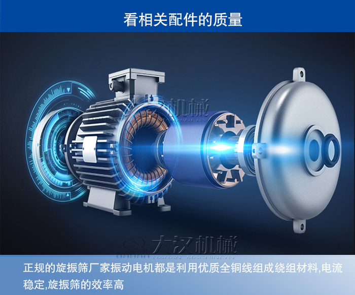 挑選旋振篩電機時,要仔細聽電機運轉(zhuǎn)時有無雜音出現(xiàn)等,正規(guī)的旋振篩廠家選用的振動電機都是利用優(yōu)質(zhì)全銅線組成繞組材料,銅線的電阻率低,線絲較細,在振動電機的定子線槽內(nèi)繞線圈數(shù)更多,電流就越穩(wěn)定,單位面積的通過電流量也就越大,大概是每平方毫米能通過5-8A電流,這就從根本上奠定了旋振篩的效率維持在較高的基數(shù)。很多不良商家為了以更低的價格吸引客戶并獲取更高額的利潤差,就選用了一種稱之為“漆包線”的劣質(zhì)振動電機配備在自己的振動篩里面。這種電機的繞組材料為鋁線,鋁線的價格要比銅線低很多,但電阻率高達0.028,電流穩(wěn)定性很差;且鋁線直徑要比銅線粗,同樣的定子線槽鋁線線圈數(shù)就要少多了,每平方毫米能通過的電流量大概是3-5A了。配備這樣的振動電機怎么會有高的效率。