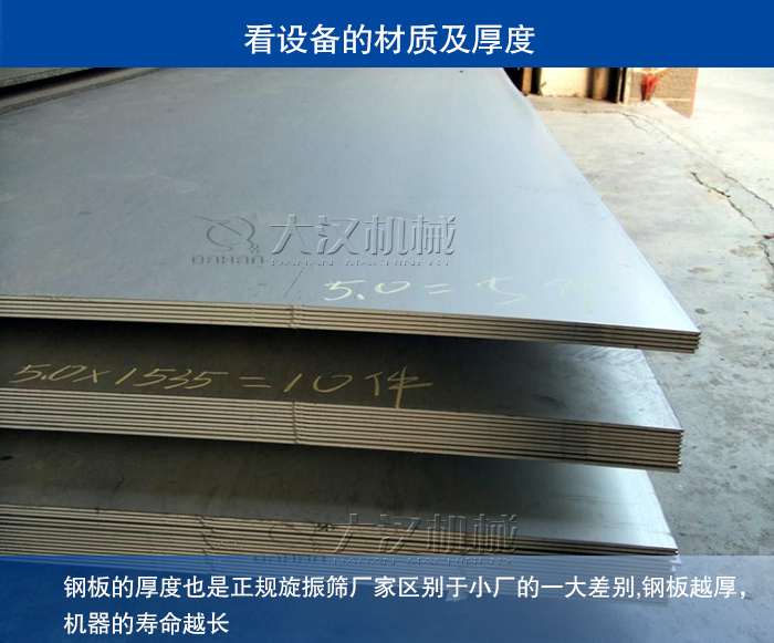 除了材質(zhì)的選擇方面外,鋼板的厚度也是正規(guī)旋振篩廠家區(qū)別于小廠的一大差別。旋振篩使用板材常見的有Q235碳鋼和304不銹鋼兩種,但其厚度的不同也可以直接影響銷售價格。我們拿常見的圓形振動篩為例:一款直徑800的旋振篩市場售價在6500元-7300元之間,多用板材厚度在2mm,但如板材厚度降低到1.7或更低,價格上會大大降低,但是旋振篩在使用過程中極易出現(xiàn)篩框斷裂、出料口斷裂等問題,正常的旋振篩的使用年限在5年左右,可這種鋼材差、鋼板薄的旋振篩可能使用半年就報廢了。