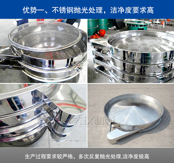 醫藥旋振篩采用304或316L不銹鋼材質,生產過程要求較嚴格,光是設備的拋光處理就需要多次反復操作,要求無物料污染,對設備潔凈度要求極高,避免對物料產生二次污染。