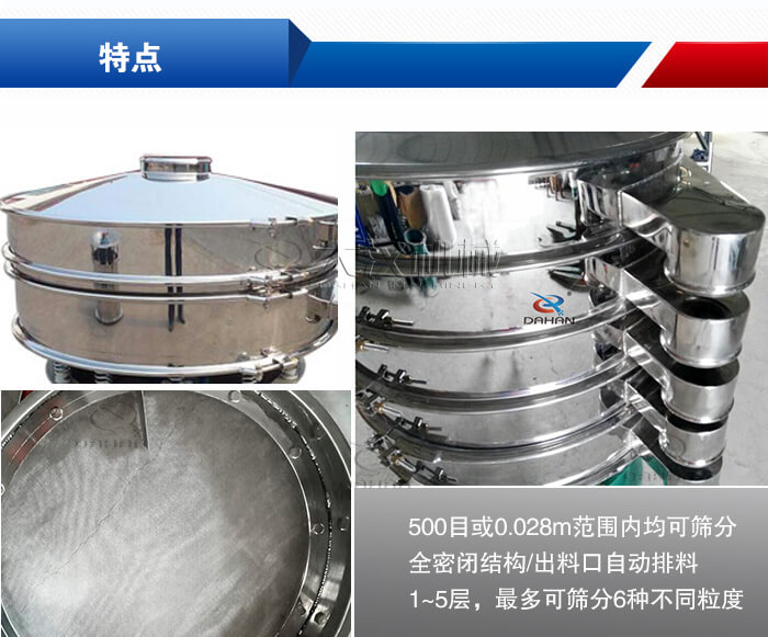 【優(yōu)勢】:①304/316不銹鋼材質(zhì)拋光而成,符合醫(yī)藥行業(yè)衛(wèi)生標準;②500目或0.028m范圍內(nèi)均可篩分,5微米的液體或漿狀物料均可過濾;③全密閉結(jié)構(gòu),防止粉塵溢散,液體飛濺