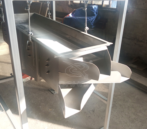 吊掛式直線篩物料從給料機均勻地進入篩分機的進料口,在振動電機的激振下,向出料口方向邊跳動邊篩分。