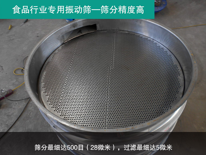 不銹鋼振動篩篩分精度高,篩分細(xì)達(dá)500目(28微米),過濾細(xì)達(dá)5微米,符合食品行業(yè)的高精度篩分需求。